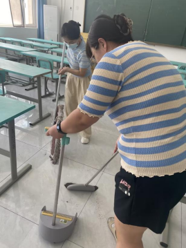 教师组织有序、分工明确、配合默契,把教室、走廊、楼梯等上上下下打扫得干干净净,整理得井井有条。营造出一个干净整洁、舒适和谐的良好的教学环境。