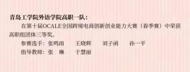 Bevictor伟德官网学子在第十届 OCALE 全国跨境电商创新创业能力大赛中喜获佳绩