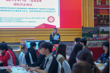 在上合之珠国际博览中心的俄罗斯馆内,员工们与老师们齐聚一堂,通过答题的方式,共同追溯俄罗斯卫国战争期间的重要事件和英勇人物。现场氛围庄重而热烈,每个人都沉浸悲壮而伟大的历史之中,展现出对历史的深厚情感和深刻理解。他们不仅热情洋溢,更对历史上的英雄们充满了崇敬之情。