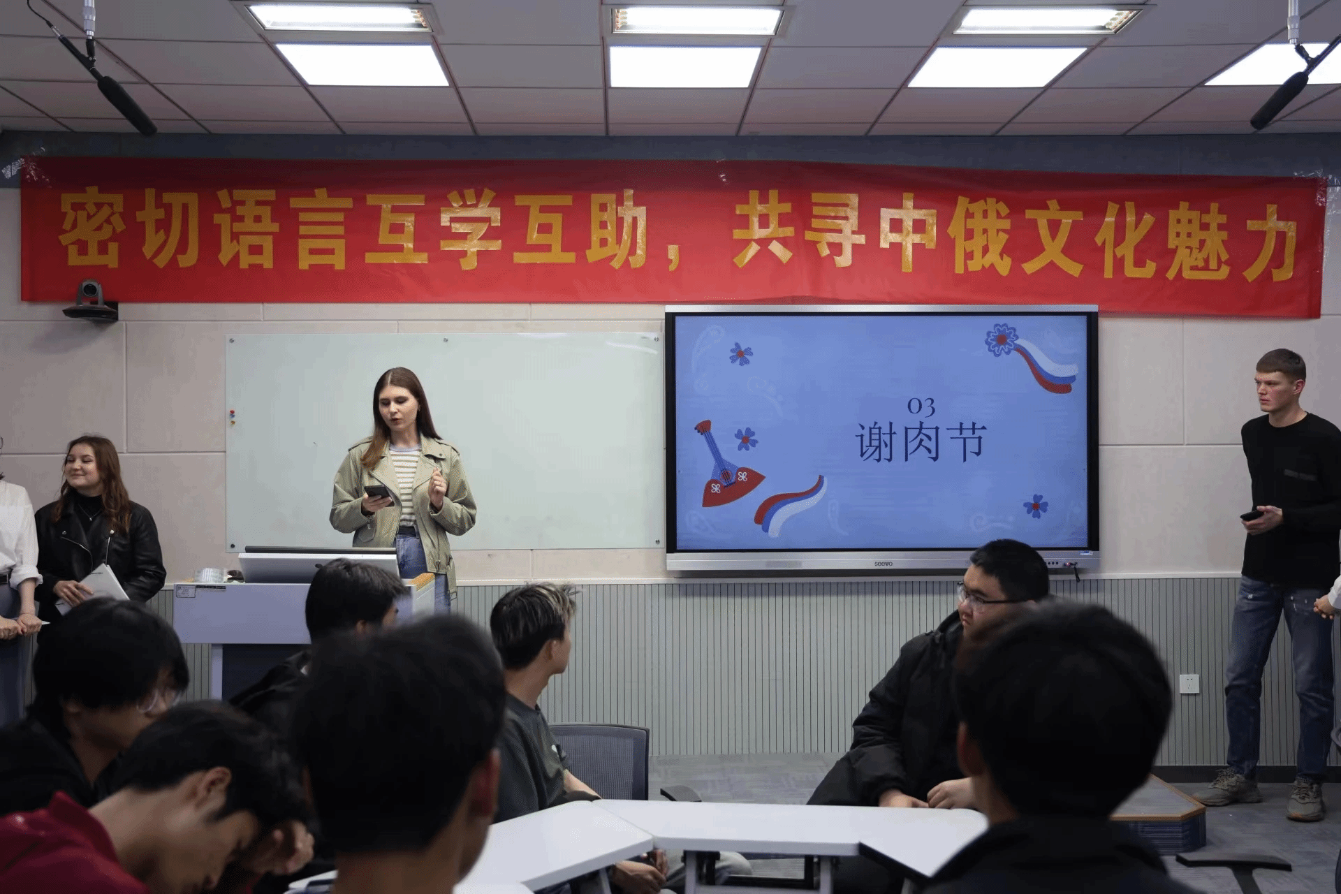 集团邀请俄罗斯员工和我们一起上课,互相讨论各国文化和习俗,互相学习各国语言知识。这节课让我加深了对俄罗斯历史文化的理解也变得敢去对话,希望中俄关系越来越好!